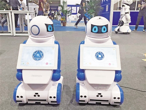 在2017中国智慧家庭博览会上,生产商展出了多款最新商用和家用服务机器人,有的可以实现智慧安防,有的则提供各种居家服务。图为以提供居家服务为主的晓曼机器人。