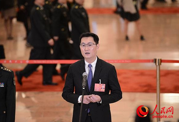 全国人大代表马化腾在“代表通道”接受媒体采访。 (人民网记者 李彤 摄)