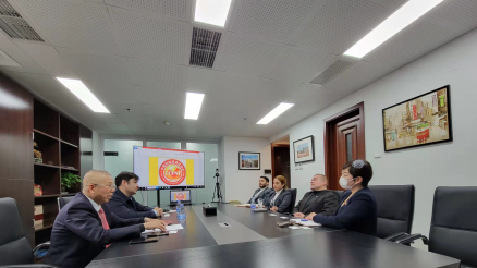 中国民族贸易促进会对外联络部外事专员夏甫卡特·伊尔扎提,萨尔瓦多驻华大使馆商务参赞佩德罗·哈耶姆参加会谈。(供稿人:夏甫卡特·伊尔扎提、吴富贵)