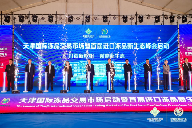 12月18日,天津国际冻品交易市场启动仪式暨首届进口冻品新生态峰会在天津举行。本次活动以“打造新枢纽,赋能新生态”为主题,旨在构建内外贸一体化发展标杆,推动冻品产业转型升级与高质量发展。天津市副市长王秀峰、中华全国供销合作总社党组成员、理事会副主任徐光洪、中国民族贸易促进会会长蓝军等领导嘉宾出席并致辞。