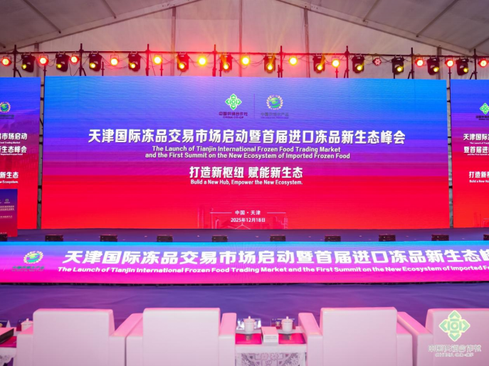 12月18日,天津国际冻品交易市场启动仪式暨首届进口冻品新生态峰会在天津举行。本次活动以“打造新枢纽,赋能新生态”为主题,旨在构建内外贸一体化发展标杆,推动冻品产业转型升级与高质量发展。天津市副市长王秀峰、中华全国供销合作总社党组成员、理事会副主任徐光洪、中国民族贸易促进会会长蓝军等领导嘉宾出席并致辞。
